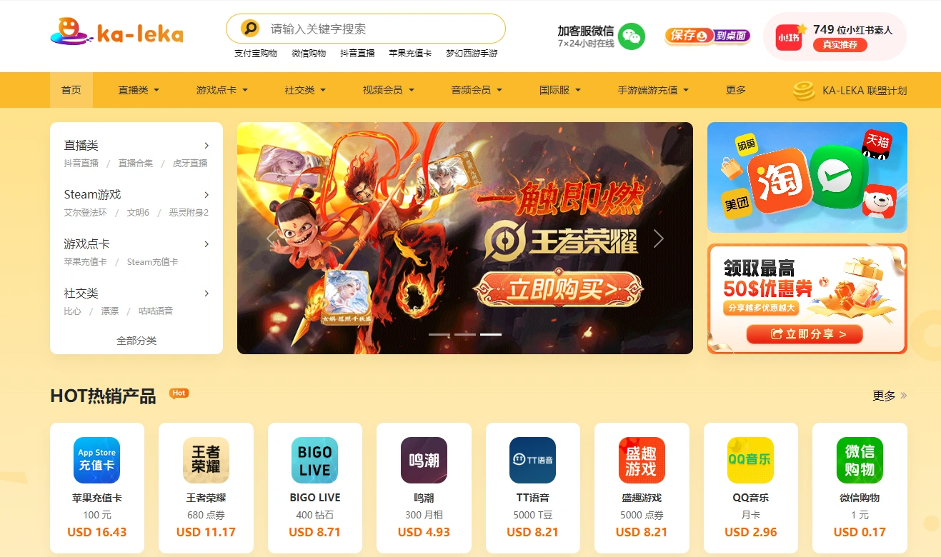 不过有的小伙伴就要问了,如果我恰好此时人在国外,身上没有人民币,有没有皮肤碎片可以换该怎么办呢,没关系,这时候就需要我们小卡——卡乐卡ka-leka海外华人充值平台登场了。专门为海外华人解决身在国外无法充值国内应用的难题,除了国内各大热门游戏,影视会员,歌曲小说等国内应用的会员也是可以充的哦。